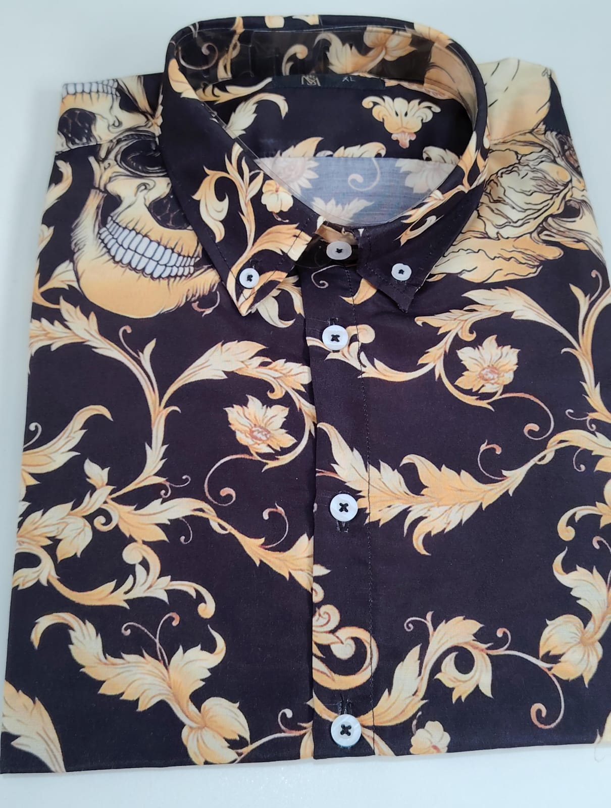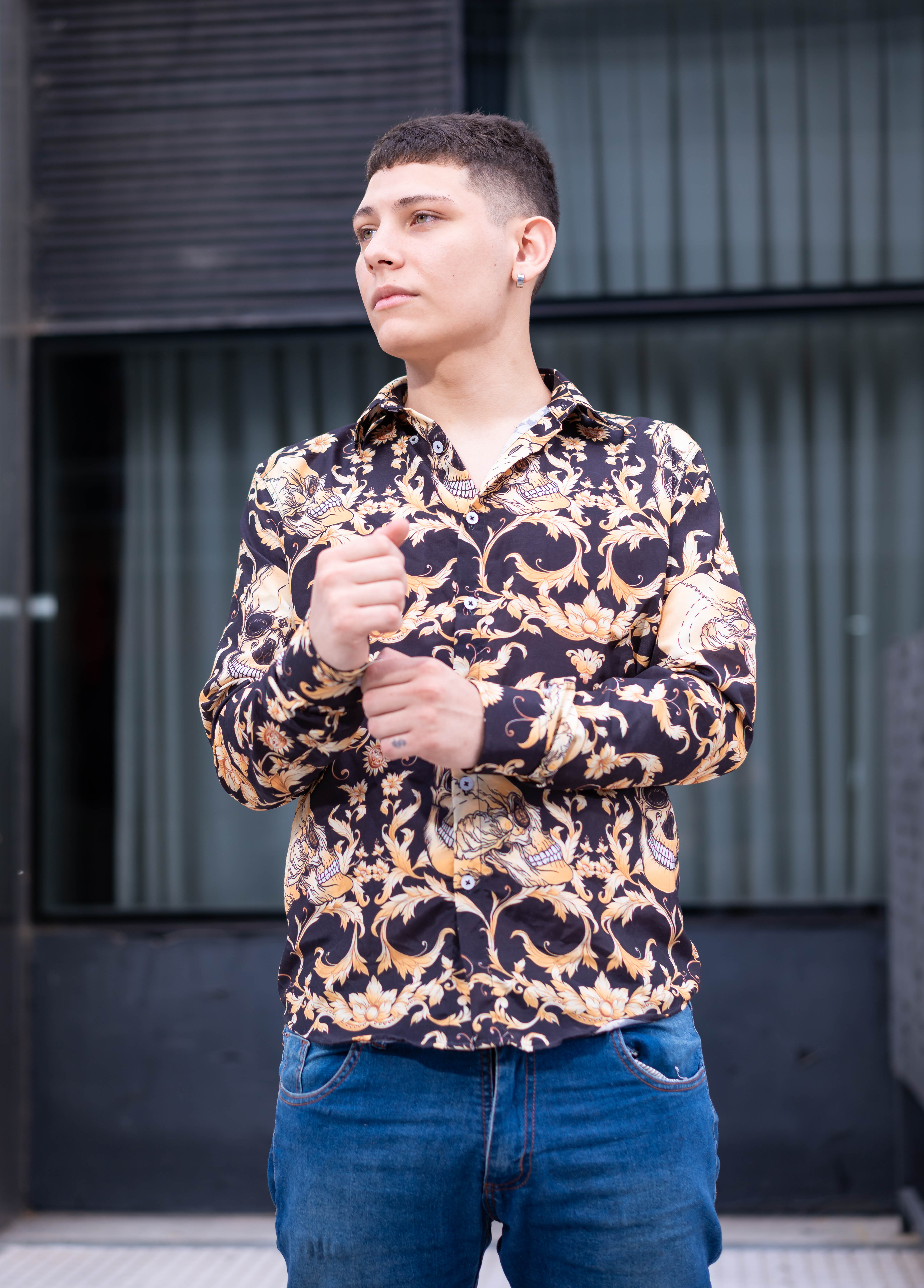 Camisa manga larga sport calce Slimfit, confeccionada en poplin italiano de excelente calidad.Esta camisa abotonada de manga larga presenta el característico estampado Barroco, un código de la casa muy apreciado.