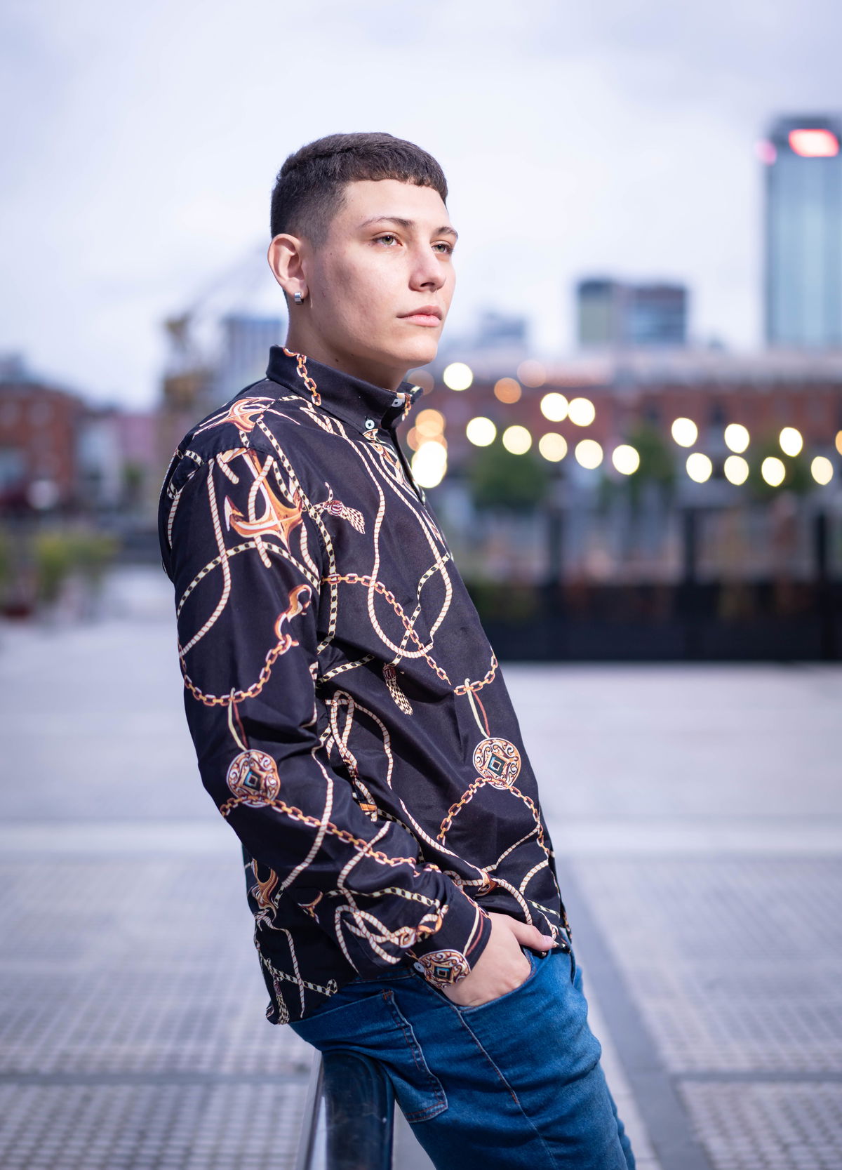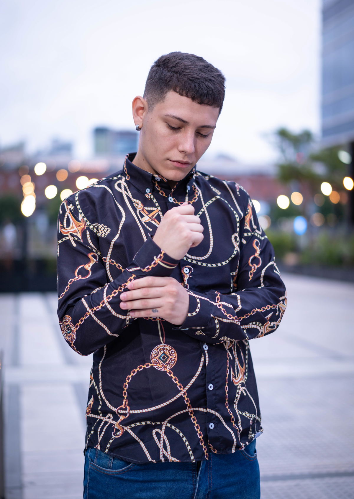 Camisa manga larga sport calce Slimfit, confeccionada en poplin italiano de excelente calidad.Esta camisa abotonada de manga larga presenta el característico estampado Barroco, un código de la casa muy apreciado.