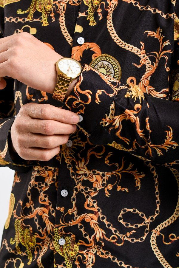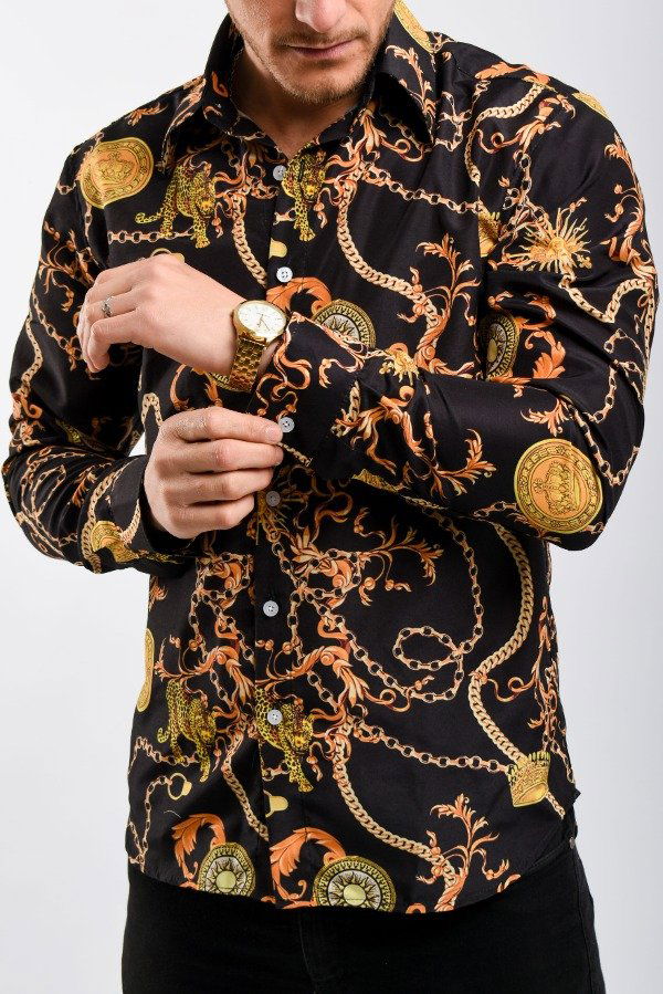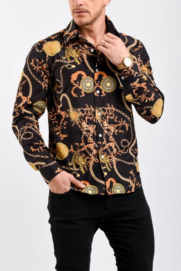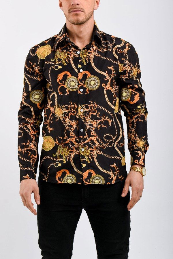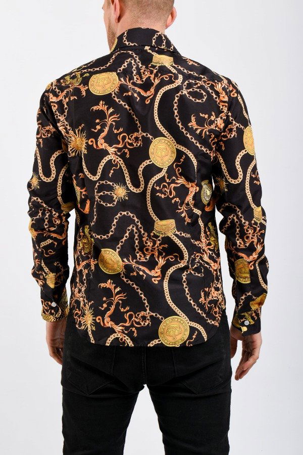 Camisa manga larga sport calce Slimfit, confeccionada en poplin italiano de excelente calidad.Esta camisa abotonada de manga larga presenta el característico estampado Barroco, un código de la casa muy apreciado.