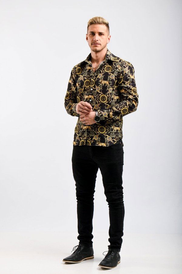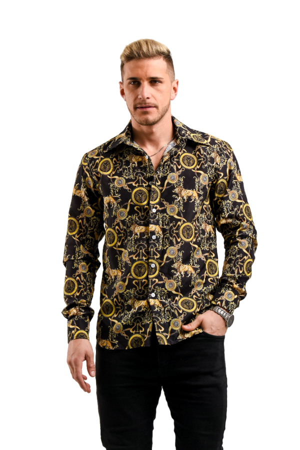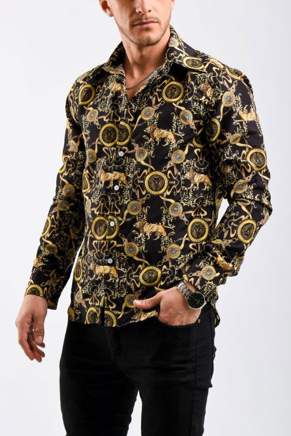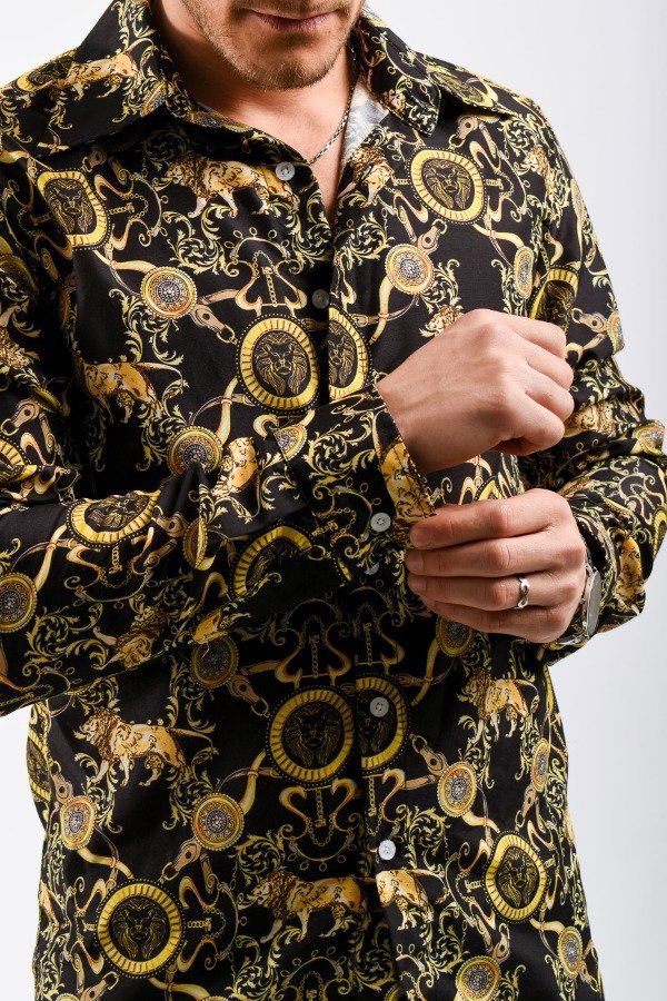 Camisa manga larga sport calce Slimfit, confeccionada en poplin italiano de excelente calidad.Esta camisa abotonada de manga larga presenta el característico estampado Barroco, un código de la casa muy apreciado.