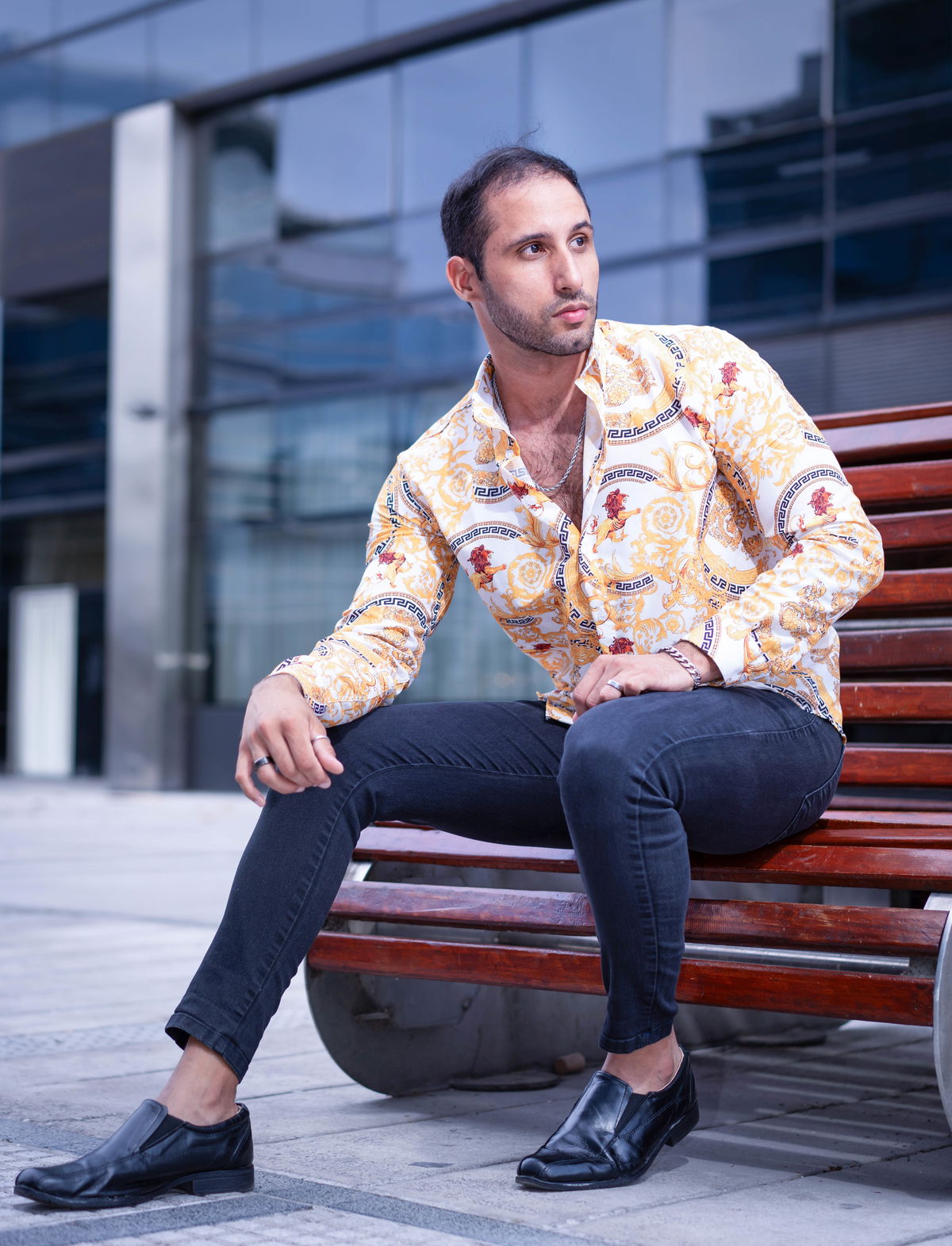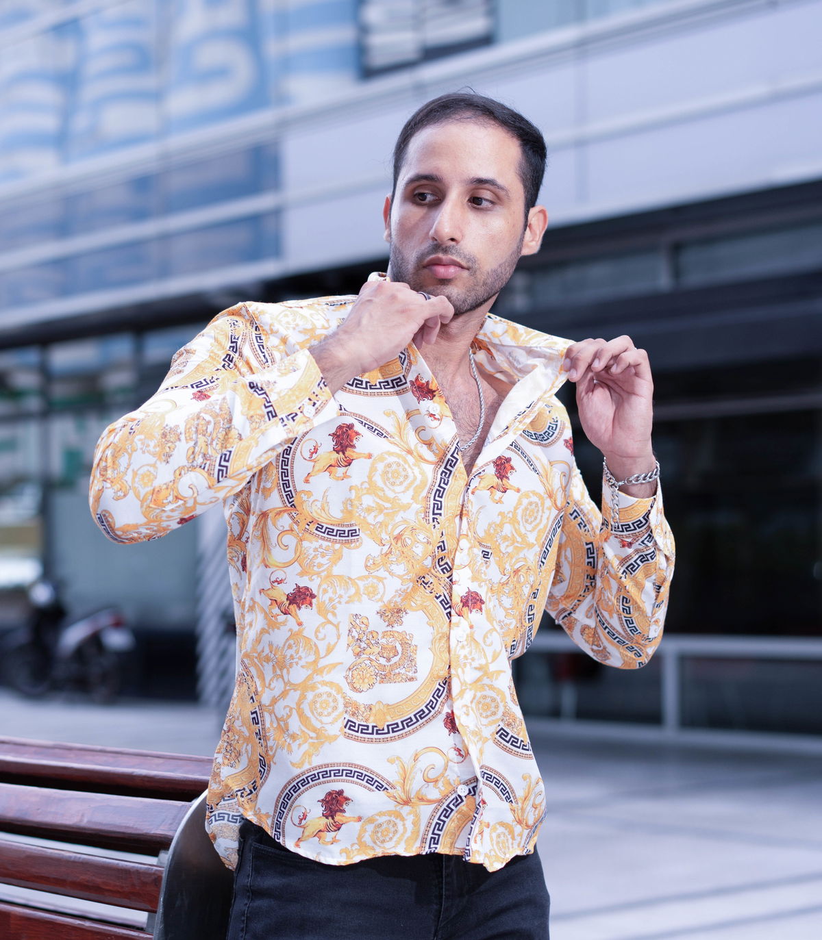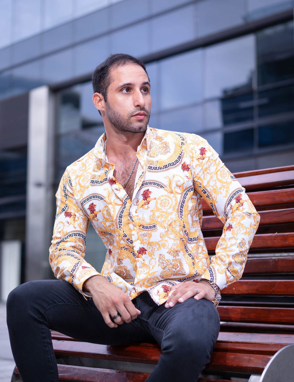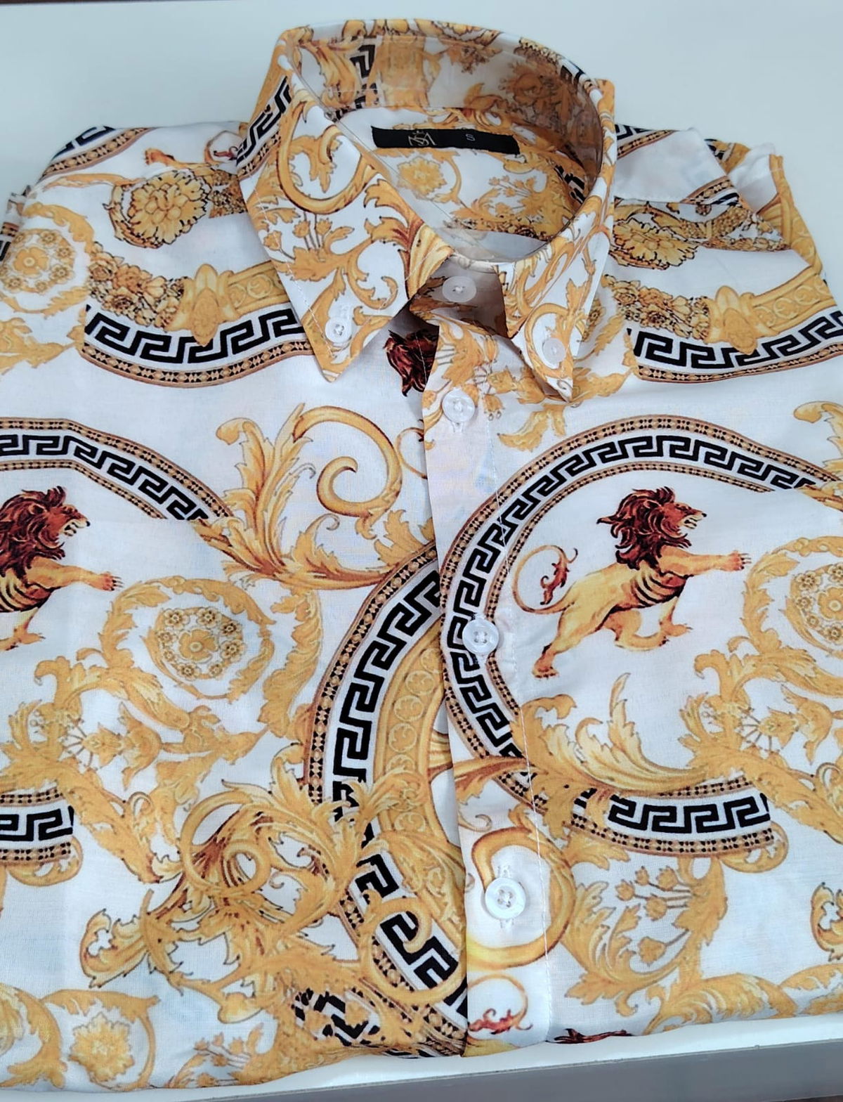 Camisa manga larga sport calce Slimfit, confeccionada en poplin italiano de excelente calidad.Esta camisa abotonada de manga larga presenta el característico estampado Barroco, un código de la casa muy apreciado.